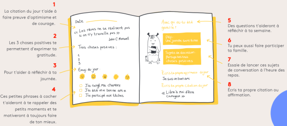 Le HAPPY SEFF JOURNAL est un cahier de développement personnel pour les enfants de 6 à 12 ans s'appuyant sur des méthodes scientifiquement prouvées qui favorisent le bonheur, aident à développer des habitudes saines et à les garder à vie, et nourrissent les esprits curieux. Superbement illustré et facile à utiliser en ne nécessitant que quelques minutes de concentration par jour, il profite aux enfants en les encourageant à exprimer leur gratitude, à réfléchir à leurs émotions et à penser à leurs actions.